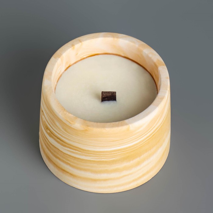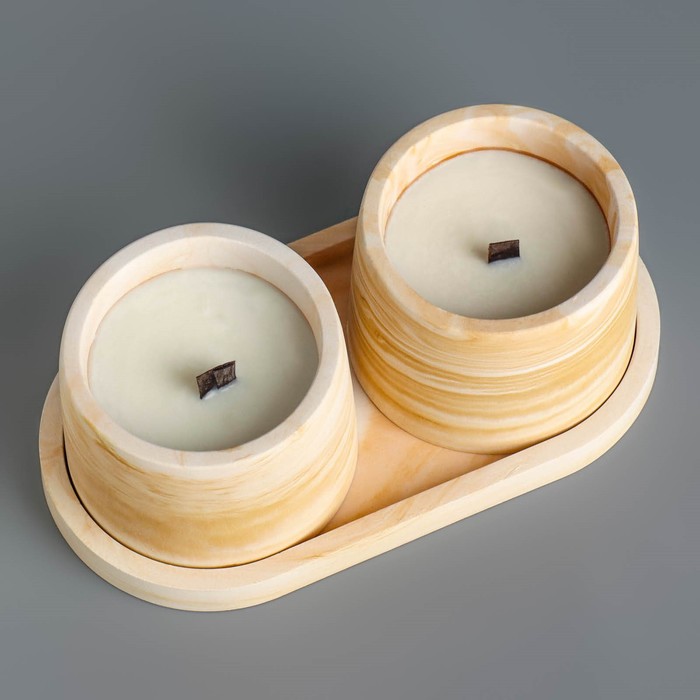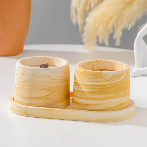 Набор свечей в подсвечнике на подставке «Лофт», соевый воск, деревянный фитиль, бело-горчичная
