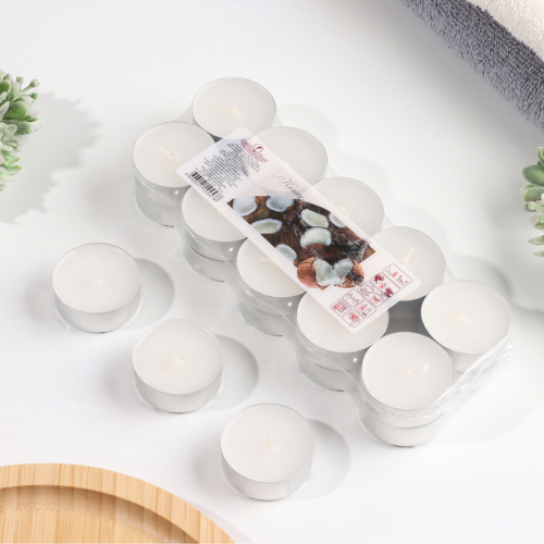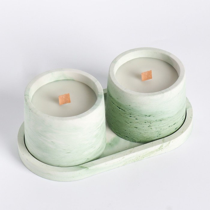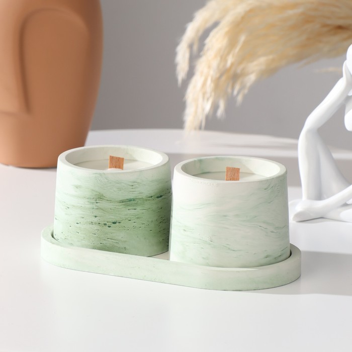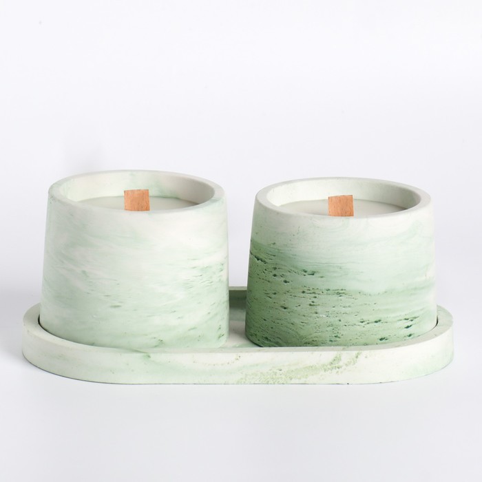 Набор свечей в подсвечнике на подставке «Лофт», соевый воск, деревянный фитиль, бело-зелёная