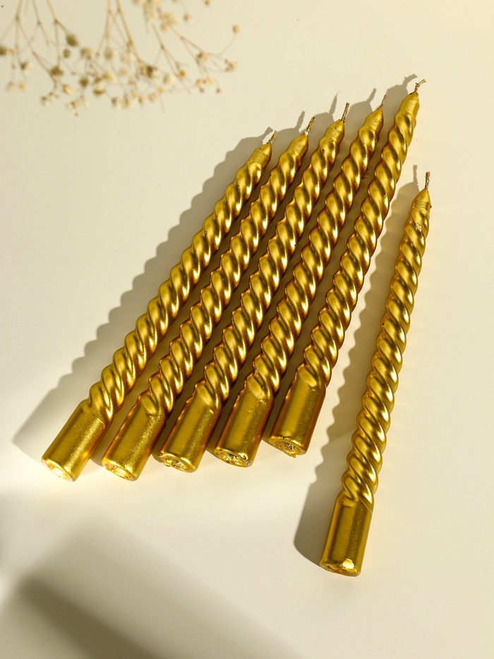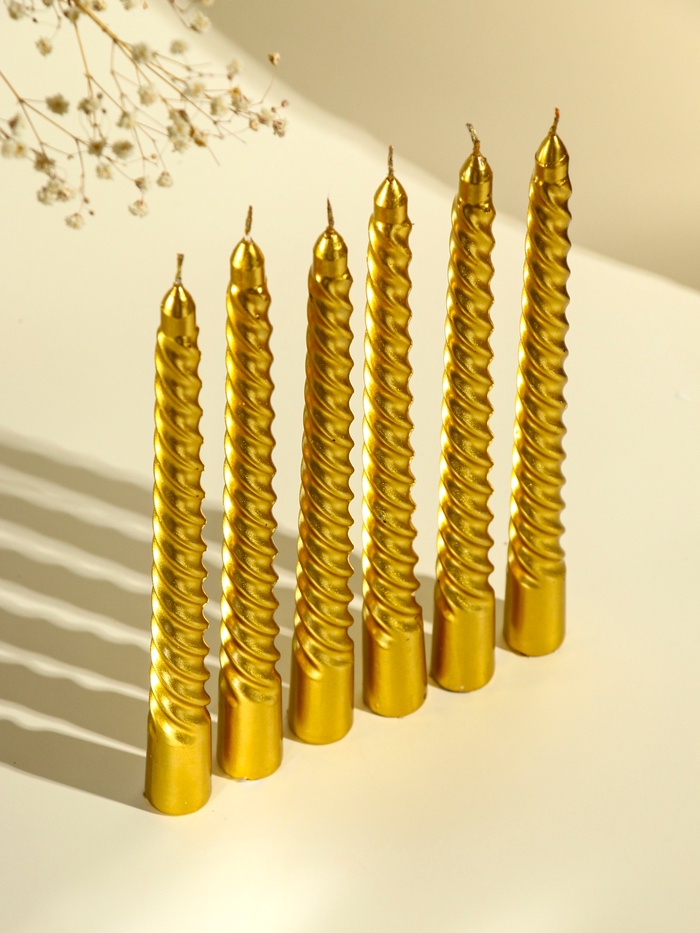 Набор свечей витых, 1.9×20 см, 6 шт., золотой металлик