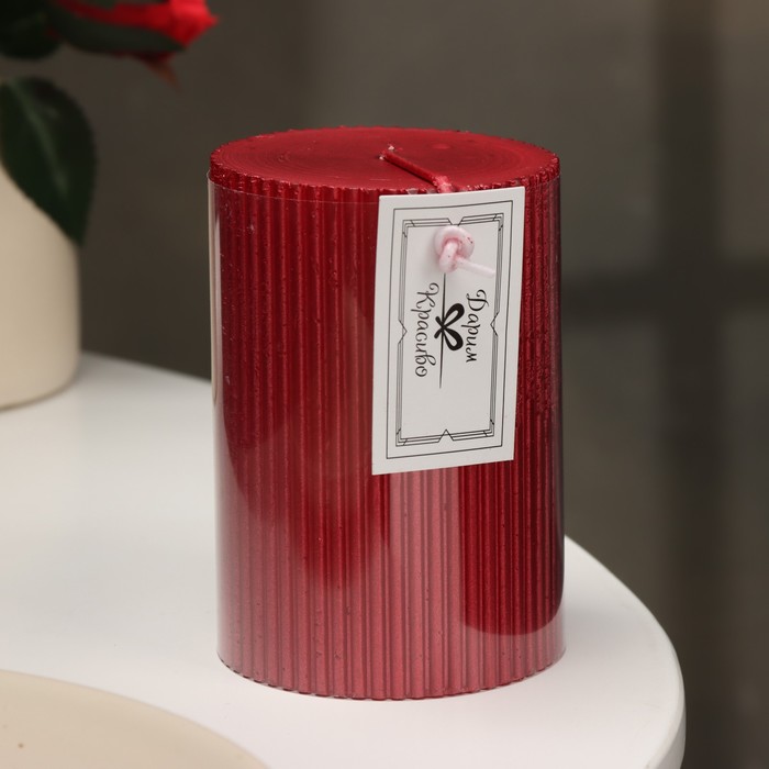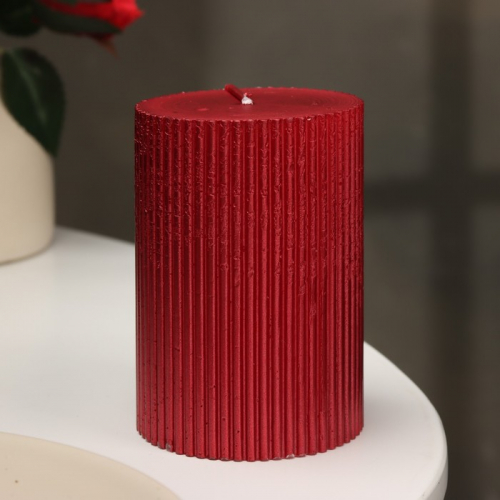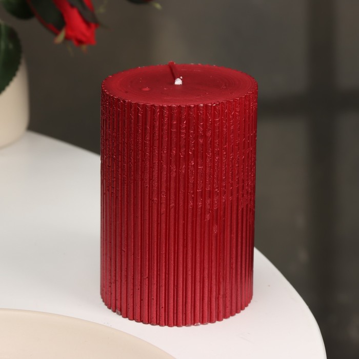 Свеча - цилиндр «Рельеф», 7×10 см, красный металлик