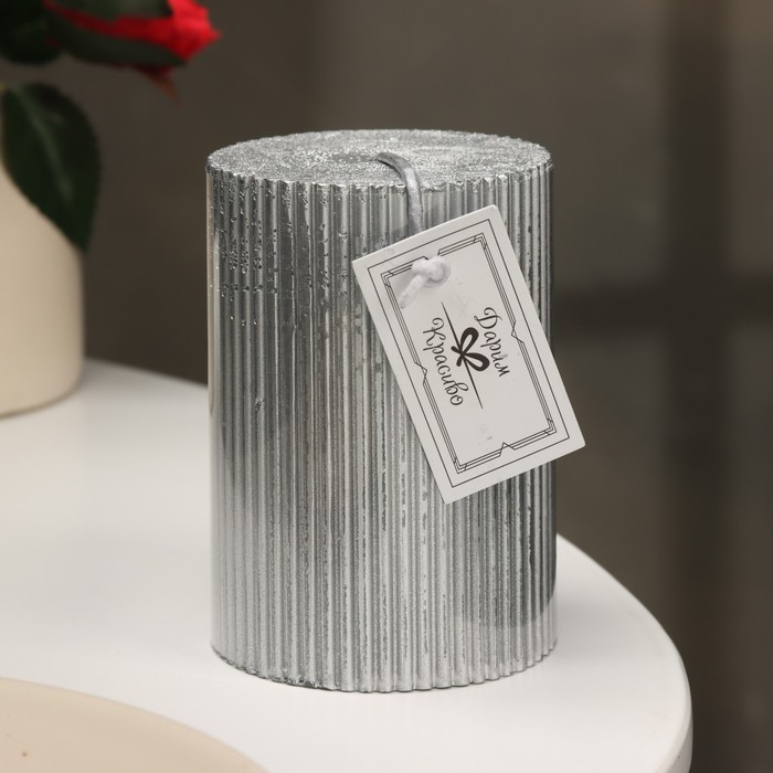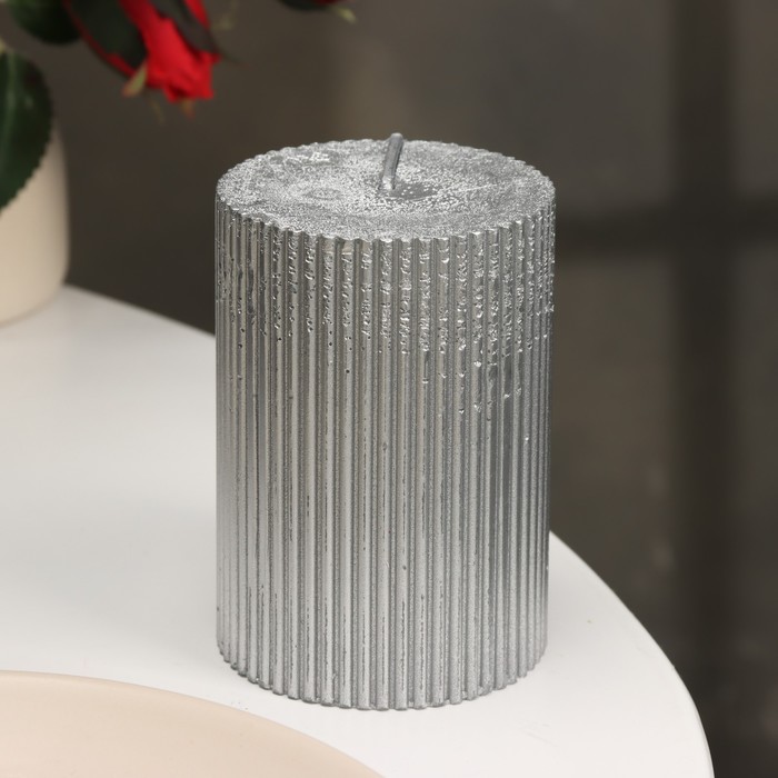 Свеча - цилиндр «Рельеф», 7×10 см, серебристый