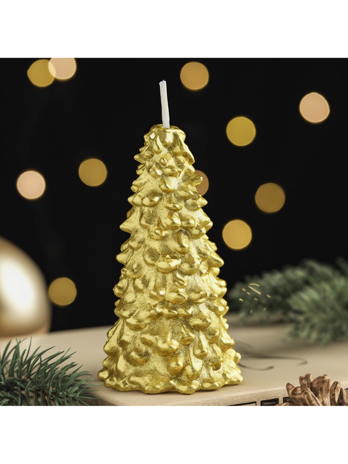 Свеча новогодняя «Ёлка», 10×5 см, золото