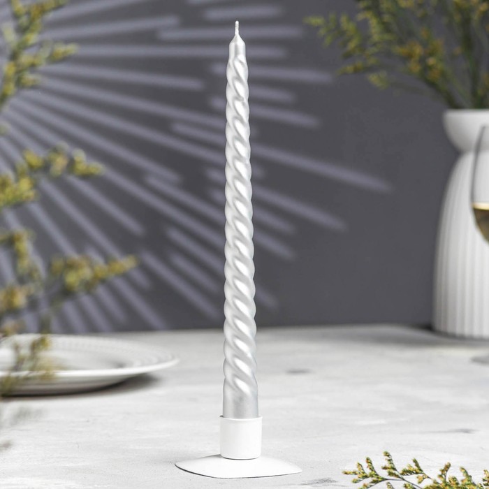 Свеча витая, 2.2×25 см, лакированная в термопленке, серебренный металлик