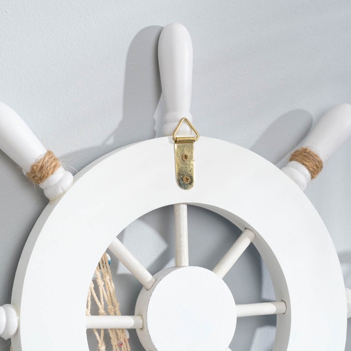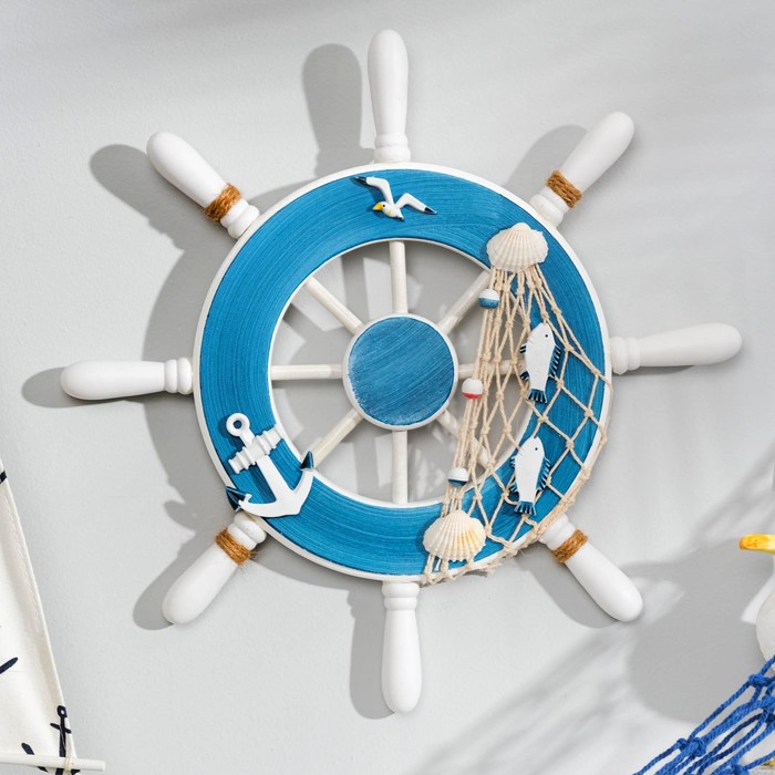Декор настенный, панно «Штурвал с сеткой», бело-синий, 32×32×2 см