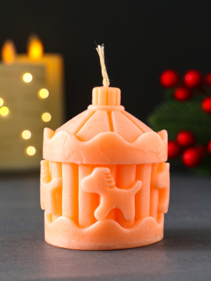 Вращающаяся карусель с лошадками в уютном свете свечи! Новогодняя свеча «Карусель» создает волшебную атмосферу зимнего праздника и теплых семейных вечеров. Традиционный персиковый оттенок и изящный рельефный рисунок делают ее изысканным декором, который наполнит дом предвкушением чуда.