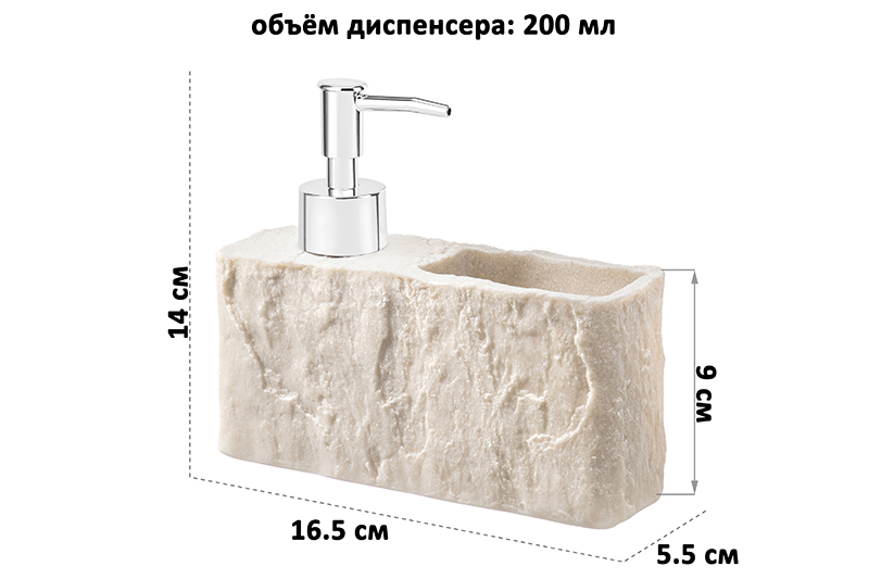 Диспенсер 200 мл 16,5*5,5*14 см, бежевый
