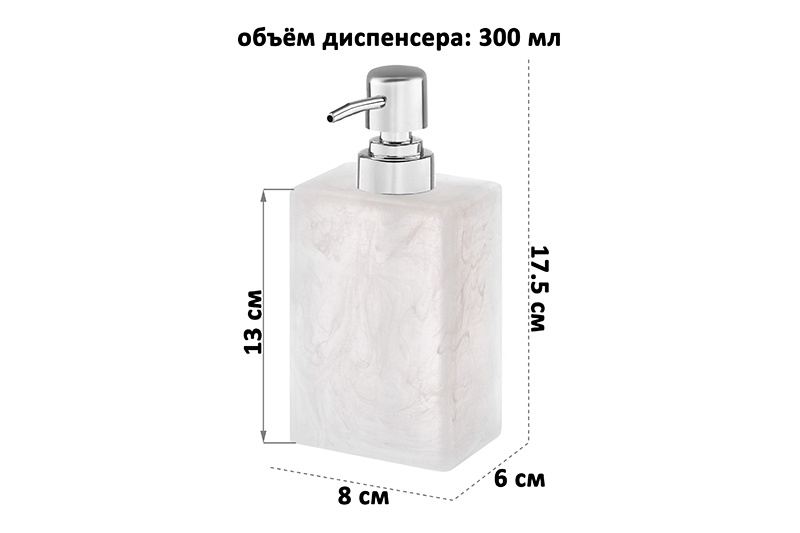 Диспенсер 300 мл 8*6*17,5 см, белый мраморный