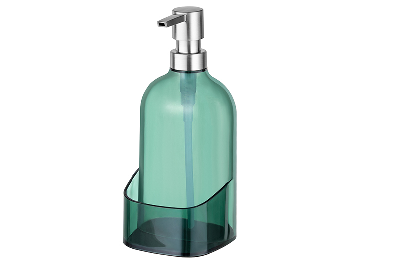 Диспенсер 500 мл 9,5*9,5*21 см прозрачный зеленый, с отделением для губки