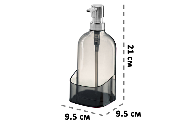 Настольный диспенсер от Elan Gallery подойдёт для хранения жидких моющих и очищающих средств. Размер изделия – 9,5х9,5х21 см, объём – 500 мл. Выполнен из пластика и имеет серый цвет. Он лаконично впишется в любой интерьер. Пластиковый дозатор предотвратит излишнее проливание. Основание оснащено нескользящей поверхностью. Заполните ёмкость жидким мылом или средством для посуды и расположите на кухонной раковине. Имеется отделение для губки – с ним вы сможете компактно хранить всё необходимое для мытья посуды. В ванной используйте диспенсер под гель для душа или шампунь. Универсальную бутылочку можно приспособить под антисептик. Поставьте её на стол, чтобы дезинфицирующее средство всегда было под рукой. Дополнительное отделение можно приспособить для хранения салфеток, тряпочки для протирки экрана или мелких канцелярских принадлежностей. Не рекомендуется применять абразивные моющие средства. Не подходит для использования в посудомоечной машине. Для очистки изделия воспользуйтесь тёплой водой с добавлением моющего средства. Избегать регулярного прямого контакта с водой (не хранить в душевой кабинке или на полке возле душа). Поставляется в стильной картонной коробке – благодаря ей вам не потребуется дополнительная подарочная упаковка. Декоративный диспенсер от бренда Элан Галерея станет отличным подарком для родных и близких. Это не только практичное, но и эстетичное решение для поддержания чистоты и порядка в вашем доме!
