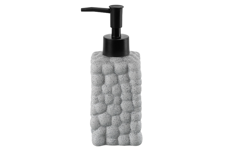 Настольный диспенсер подойдёт для хранения жидких моющих и очищающих средств. Размер изделия – 6,5х6,5х18 см, объём – 280 мл. Баночка выполнена из керамики, её поверхность украшена выпуклым рельефом и узором из маленьких тёмных вкраплений. Пластиковый дозатор поможет вам извлечь необходимое количество средства. Стильный аксессуар найдёт своё место на кухне, в ванной и даже в прихожей. Благодаря изящному дизайну он дополнит интерьер любой квартиры! Компактные размеры позволяют разместить красивый флакон на полке, столе или тумбочке для удобства в повседневном поддержании гигиены. Заполните ёмкость жидким мылом или средством для посуды. Подойдёт в качестве принадлежности для ванной: залейте гель для душа или шампунь и поставьте на раковину. Герметичная баночка не допустит проливаний. Не рекомендуется применять абразивные моющие средства. Не подходит для использования в посудомоечной машине. Для очистки изделия пользуйтесь тёплой водой с добавлением моющего средства. Поставляется в стильной картонной коробке – вам не потребуется дополнительная подарочная упаковка. Декоративный диспенсер станет отличным подарком для родных и близких. Это не только практичное, но и эстетичное решение для организации чистоты и порядка в вашем доме.
