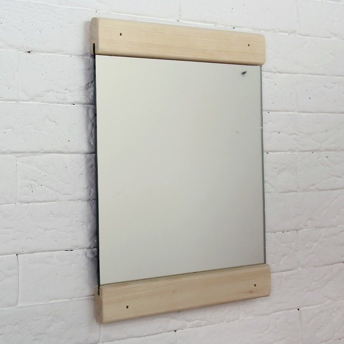 Такое зеркало подойдёт для бани и сауны. Дерево не выделяет вредных веществ при нагревании и подходит для помещений с высокой влажностью.