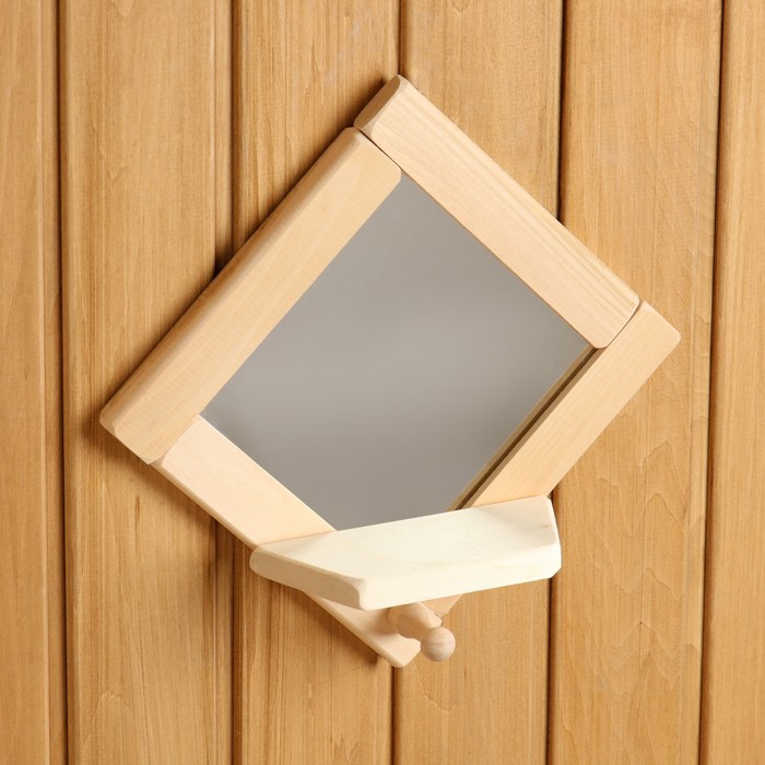 Такое зеркало подойдёт для бани и сауны. Дерево не выделяет вредных веществ при нагревании и подходит для помещений с высокой влажностью.