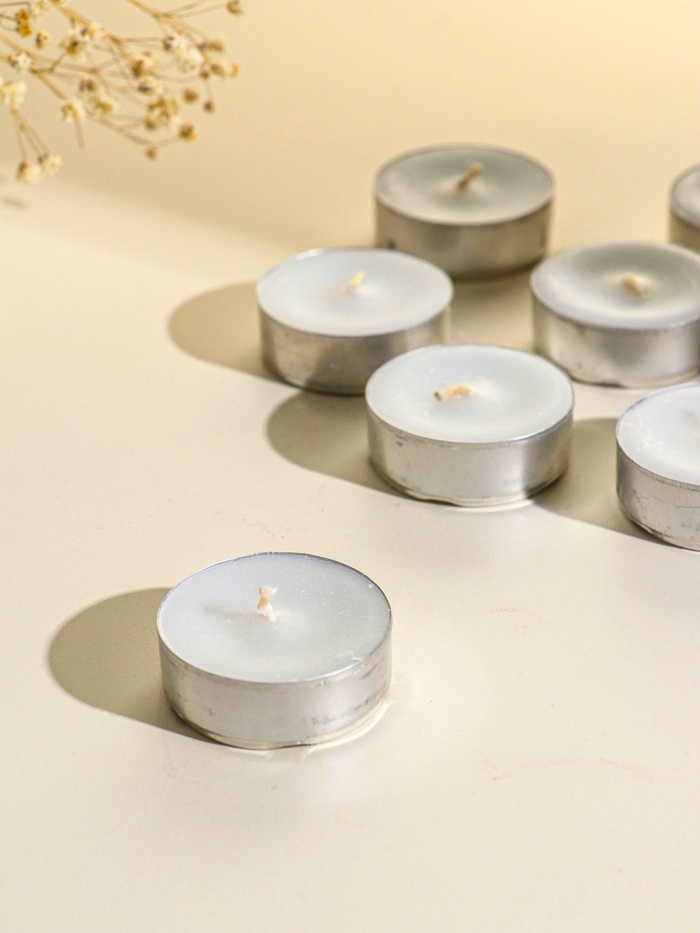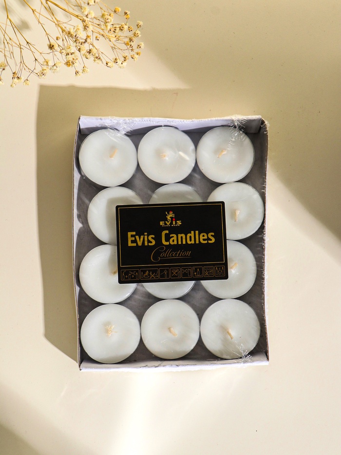 Набор из двенадцати белых свечей в жестяных гильзах — это готовое решение для создания уюта и спокойной атмосферы. Каждая свеча обладает ровным, чистым горением и подходит для частого использования.