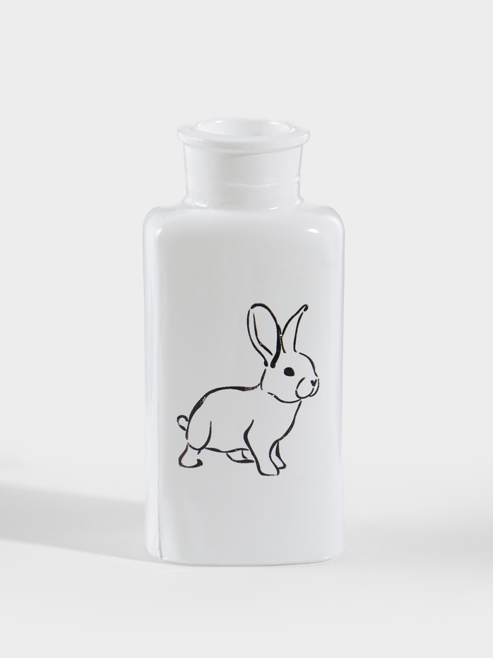 Минимализм и изящество для ваших цветов Стеклянная ваза «Кролик», белая, 14.5 см — это настольная ваза с изображением кролика. Её дизайн создаёт ощущение лёгкости и современной эстетики, подчеркивая естественную красоту букетов и одиночных стеблей.