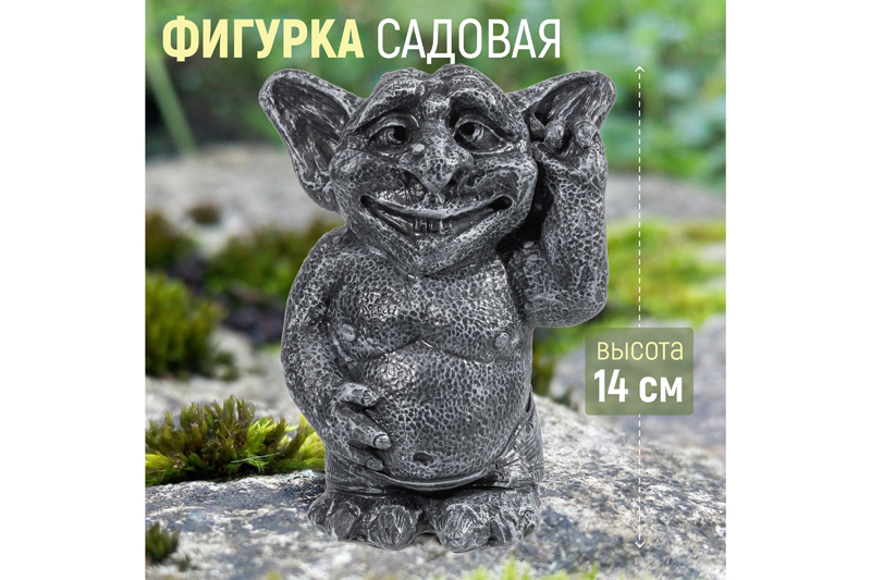 Фигурка Elan Gallery "Тролль Петрович" серого цвета 11х8х14 см выполнена из гипса. Фигуру сказочного тролля можно использовать как уличный декор или интерьерное украшение вашего дома. Дачная фигурка украсит газон возле веранды или беседки на вашем участке. Разместите гипсовую статуэтку на даче возле клумбы или альпийской горки. Создайте с помощью неё декоративную композицию в цветочном садике. Поставьте волшебного тролля во дворе вашего дома, и он присмотрит за садом или огородом. Дома его можно посадить в большой горшок или кашпо среди цветов и растений. Газонная скульптура – незаменимый инвентарь для оформления ландшафтной композиции. Не рекомендуется использовать абразивные моющие средства. Садовые фигурки – прекрасный подарок для ваших близких, в том числе бабушки, которая любит украшать свой огород. Фигурка мифического существа каждый день будет поднимать настроение вашим близким и подарит атмосферу волшебства и сказки любому пространству.