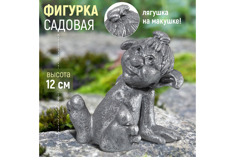 Фигурка Elan Gallery "Тролльчонок" 12,5х10х12,5 см выполнена из гипса. Фигуру сказочного тролля серебристого оттенка можно использовать как уличный декор или интерьерное украшение вашего дома. На голове у мифического персонажа сидит маленькая лягушка. Дачная фигурка украсит газон возле веранды или беседки на вашем участке. Разместите гипсовую статуэтку на даче возле клумбы или альпийской горки. Создайте с помощью неё декоративную композицию в цветочном садике. Поставьте волшебного тролля во дворе вашего дома, и он присмотрит за садом или огородом. Дома его можно посадить в большой горшок или кашпо среди цветов и растений. Газонная скульптура – незаменимый инвентарь для оформления ландшафтной композиции. Не рекомендуется использовать абразивные моющие средства. Садовые фигурки – прекрасный подарок для ваших близких, в том числе бабушки, которая любит украшать свой огород. Фигурка мифического существа серебряного цвета с лягушонком на макушке каждый день будет поднимать настроение вашим близким и подарит атмосферу волшебства и сказки любому пространству.