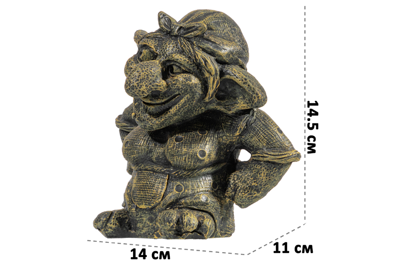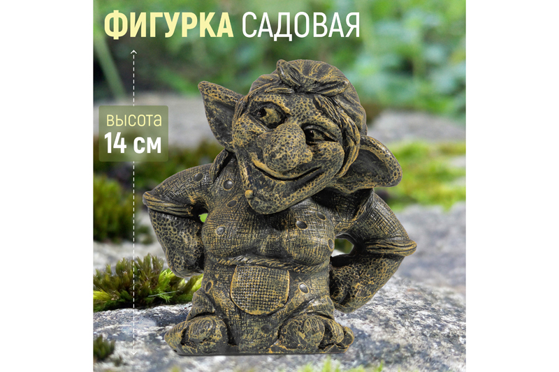 Фигурка Elan Gallery "Тролль Петровна" 14х11х14,5 см выполнена из гипса. Фигуру сказочного тролля можно использовать как уличный декор или интерьерное украшение вашего дома. Дачная фигурка украсит газон возле веранды или беседки на вашем участке. Разместите гипсовую статуэтку на даче возле клумбы или альпийской горки. Создайте с помощью неё декоративную композицию в цветочном садике. Поставьте волшебного персонажа во дворе вашего дома, и он присмотрит за садом или огородом. Дома его можно посадить в большой горшок или кашпо среди цветов и растений. Газонная скульптура – незаменимый инвентарь для оформления ландшафтной композиции. Не рекомендуется использовать абразивные моющие средства. Садовые фигурки – прекрасный подарок для ваших близких, в том числе бабушки, которая любит украшать свой огород. Фигурка мифического существа каждый день будет поднимать настроение вашим близким и подарит атмосферу волшебства и сказки любому пространству.