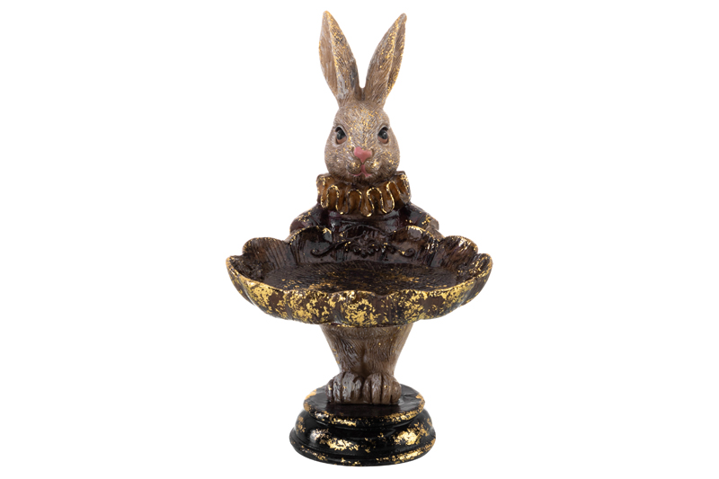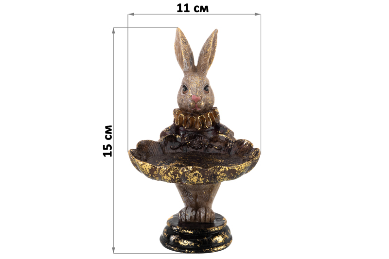 Фигурка декоративная Elan Gallery "Кролик" размером 11х9х15 см способна преобразить любое помещение! Статуэтка выполнена из полирезина. Полирезин – это современный материал, который славится своей лёгкостью, устойчивостью к влаге и солнечным лучам. Он не выделяет вредных веществ и не имеет запаха. Интересный элемент декора принесёт в дом красоту и уют. Фигурка с золотистыми элементами послужит украшением гостиной или спальни и добавит в ваш интерьер нотку индивидуальности и стиля. Используйте его как подставку для разных мелочей, или же просто украсьте им свою комнату. Красивый кролик станет незаменимым помощником для хранения ваших украшений! Превратите вашу кухню или дачу в уютное место с особой атмосферой благодаря этому сувениру! Вы можете разместить стильную статуэтку на полке, столе или создать декоративную композицию вместе с другими сувенирами. Фигурка кролика станет чудесным подарком для ваших родных и близких на любой праздник. Пусть она будет символом вашей дружбы и создаст хорошее настроение взрослым и детям!