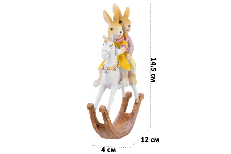 Фигурка декор. 13*4*14,5 см "Кролики на лошадке-качалке"