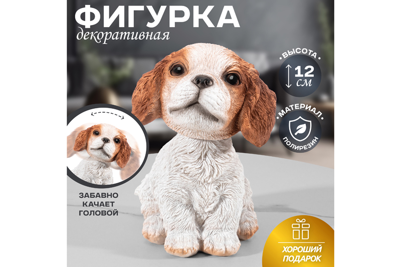 Декоративная фигурка Elan Gallery "Кавалер-кинг-чарльз-спаниель" размером 10х7,5х12,5 см способна преобразить любое помещение! Статуэтка в виде милой собачки выполнена из полирезина. Полирезин – это современный материал, который славится своей лёгкостью, устойчивостью к влаге и солнечным лучам. Он не выделяет вредных веществ и не имеет запаха. Полирезин легко поддается обработке, поэтому изделия из него славятся своей реалистичностью и проработанными деталями. Собака с добрыми глазками и чёрным носиком забавно качает головой, такие статуэтки называют "болванчик". Этот интересный элемент декора принесёт в дом красоту и уют. Настольная фигурка украсит интерьер гостиной или спальни и создаст тёплую атмосферу. Превратите вашу кухню или дачу в уютное место благодаря этому сувениру! Вы можете разместить игрушку на полке, столе или создать декоративную композицию вместе с другими украшениями на камине. Пёсик с качающейся головой поможет украсить ваше рабочее место в офисе и сделает кабинет уютнее! Не рекомендуется применять абразивные моющие средства. В коллекции Elan Gallery представлено много товаров для дома, предметов декора и сувенирной продукции для создания уюта в любом пространстве. Фигура станет чудесным подарком для ваших близких и коллег на любой праздник. Статуэтки милых животных особенно понравятся владельцам домашних питомцев, а также станут приятным сюрпризом для мальчика или девочки. Порадуйте своего ребенка, мечтающего о забавном хвостатом друге. Пусть милый маленький спаниель будет символом вашей дружбы и создаст хорошее настроение взрослым и детям!
