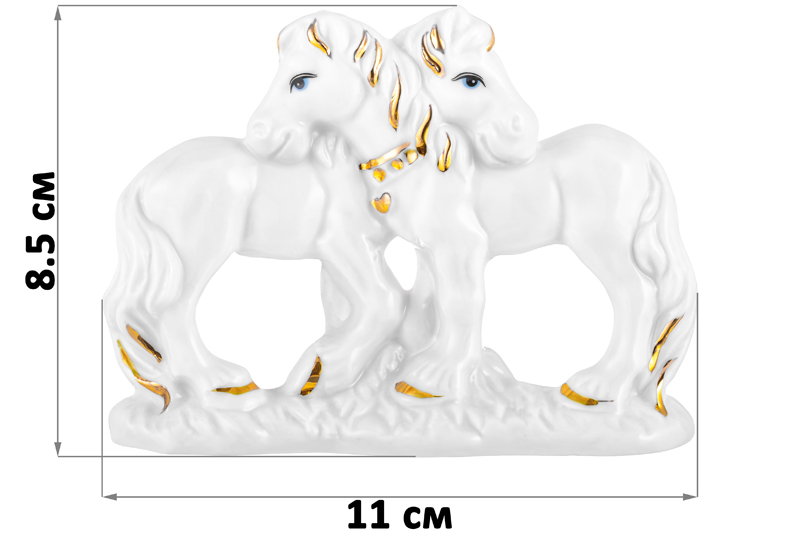 Фигурка декоративная 11*4*8,5 см "Лошади" белая с золотом, фарфор