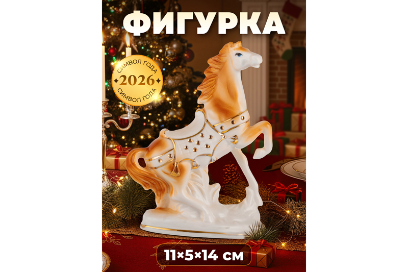 Фигурка декоративная 11*5*14,5 см "Лошадь" коричневая с золотом, фарфор