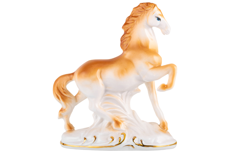 Фигурка декоративная 12*5,5*13,5 см "Лошадь" коричневая с золотом, фарфор