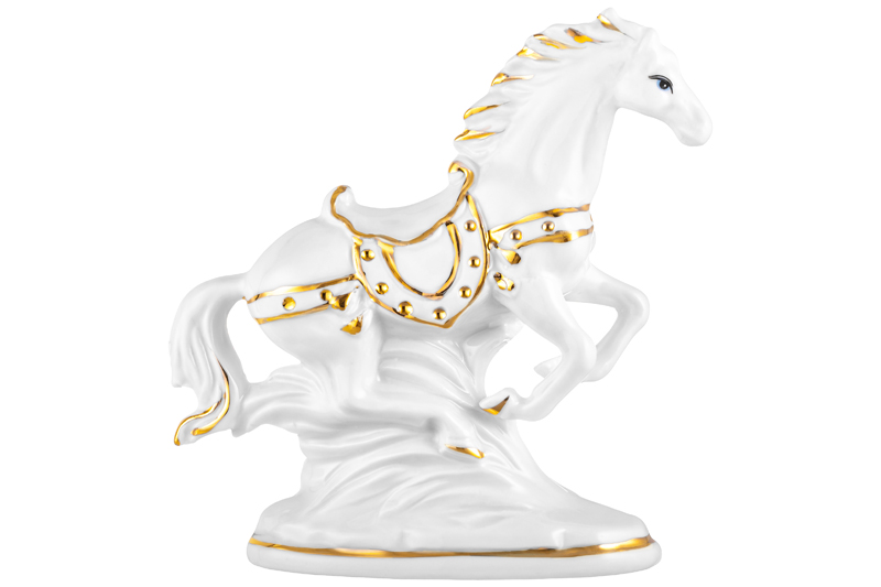 Фигурка декоративная 13*5*16,5 см "Лошадь" белая с золотом, фарфор