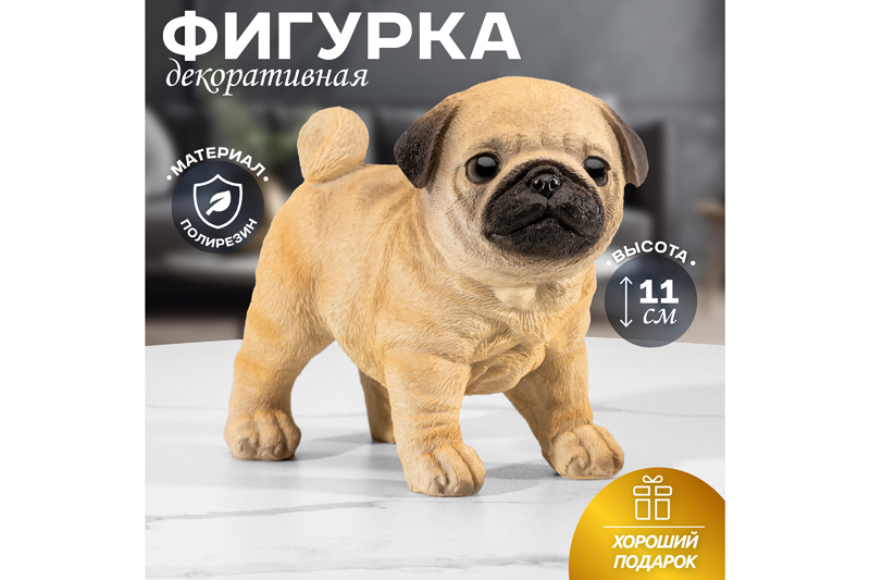 Декоративная фигурка Elan Gallery "Мопс" размером 13,5х7х11 см способна преобразить любое помещение! Статуэтка в виде собачки выполнена из полирезина. Полирезин – это современный материал, который славится своей лёгкостью, устойчивостью к влаге и солнечным лучам. Он не выделяет вредных веществ и не имеет запаха. Полирезин легко поддается обработке, поэтому изделия из него славятся своей реалистичностью и проработанными деталями. Собака с добрыми глазками и чёрным носиком станет оригинальным элементом декора и принесёт в дом красоту и уют. Настольная фигурка украсит интерьер гостиной или спальни и создаст тёплую атмосферу. Превратите вашу кухню или дачу в уютное место благодаря этому сувениру! Вы можете разместить игрушку на полке, столе или создать декоративную композицию вместе с другими украшениями на камине. Пёсик поможет украсить ваше рабочее место в офисе и сделает кабинет уютнее! Не рекомендуется применять абразивные моющие средства. В коллекции Elan Gallery представлено много товаров для дома, предметов декора и сувенирной продукции для создания уюта в любом пространстве. Фигура станет чудесным подарком для ваших близких и коллег на любой праздник. Статуэтки милых животных особенно понравятся владельцам домашних питомцев, а также станут приятным сюрпризом для мальчика или девочки. Порадуйте своего ребенка, мечтающего о забавном хвостатом друге. Пусть милый мопсик будет символом вашей дружбы и создаст хорошее настроение взрослым и детям!