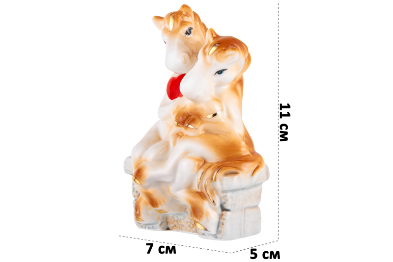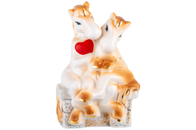 Фигурка декоративная 7*5*11 см "Лошади-влюбленная пара" коричневая с золотом, фарфор