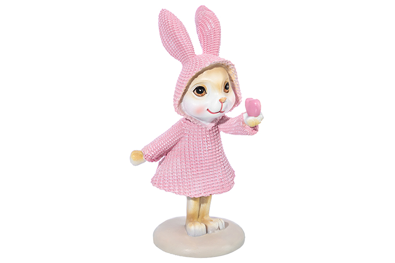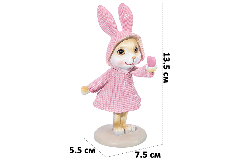 Фигурка декоративная 7,5*5,5*13,5 см "Зайка в розовом плаще"