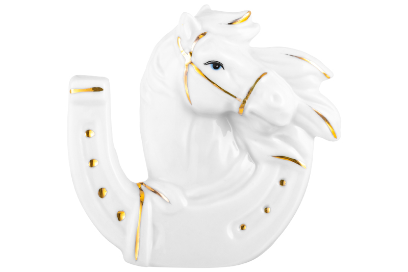 Фигурка декоративная 9*3*8,5 см "Лошадь и подкова" белая с золотом, фарфор