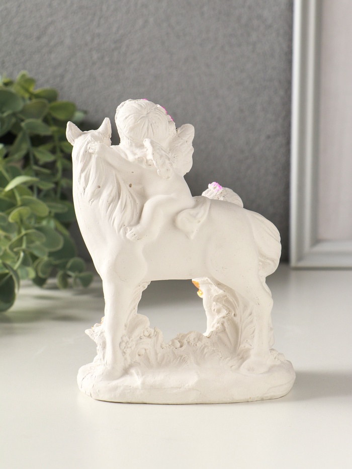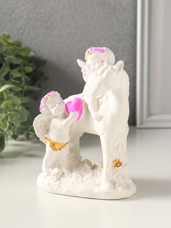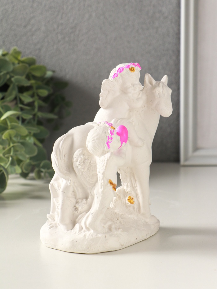 Эта расписная гипсовая фигурка — маленький хранитель домашнего тепла и праздничного настроения. Два ангелочка, нежно обнимающие друг друга на спине коня, символизируют верность, невинность и светлую радость. Фигурка станет многозначным подарком, который говорит о чувствах без слов, подходя для влюблённых пар, молодожёнов или как рождественский и пасхальный сувенир для создания уюта.