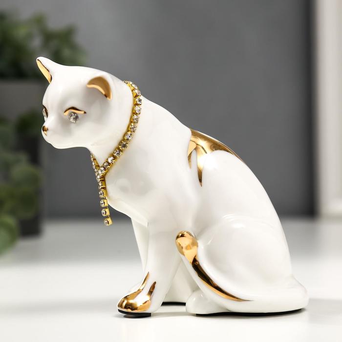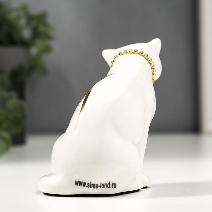 Фигурка керамика «Белая кошечка с ожерельем», с золотом, стразы, 10.2 см