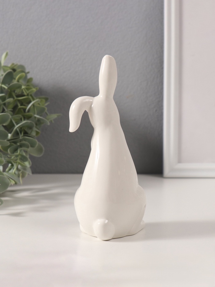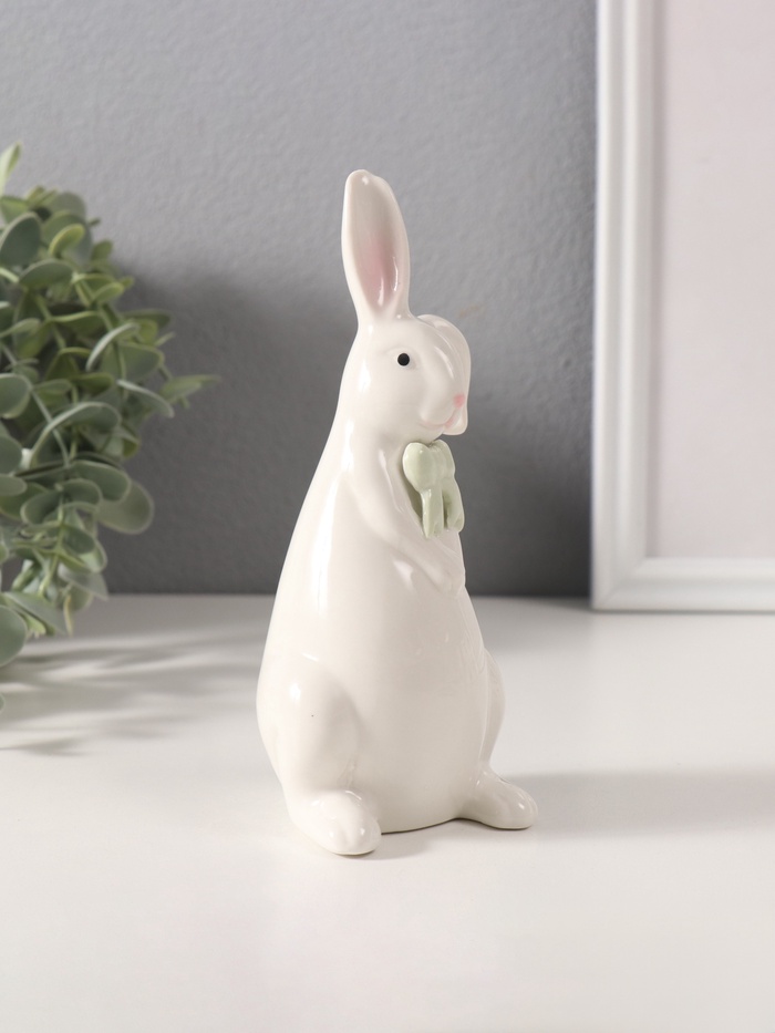 Фигурка керамика «Белый кролик с зелёным бантиком», 6×6.5×16.5 см