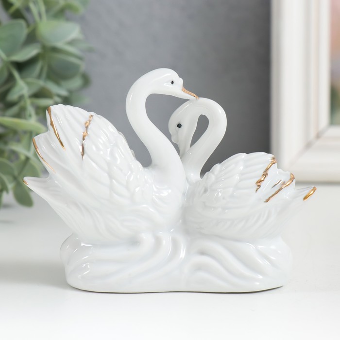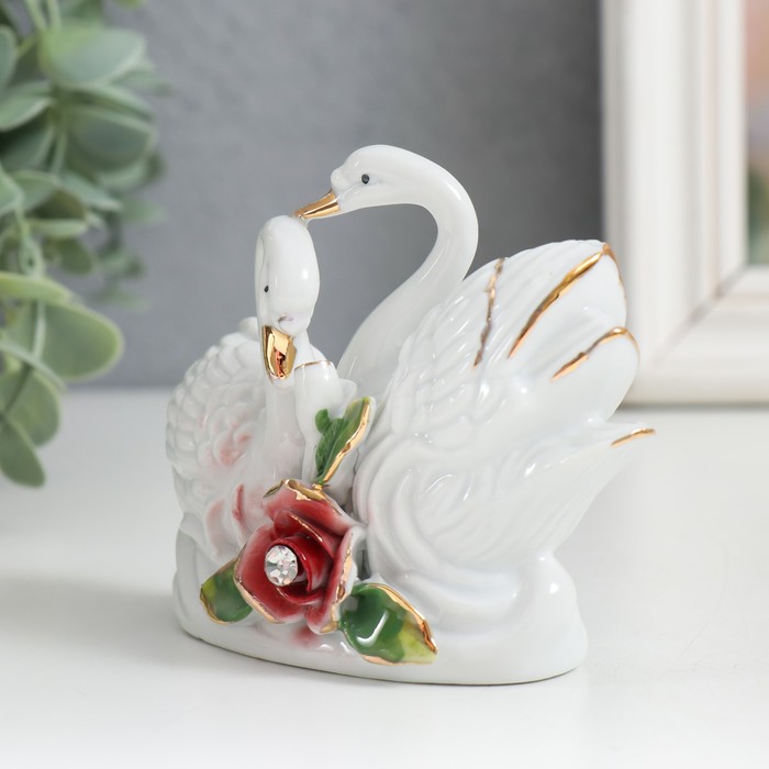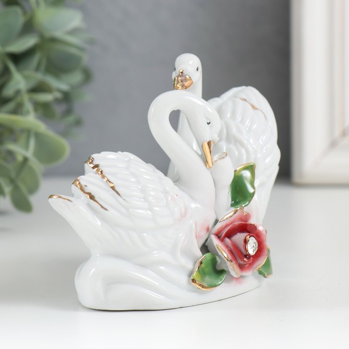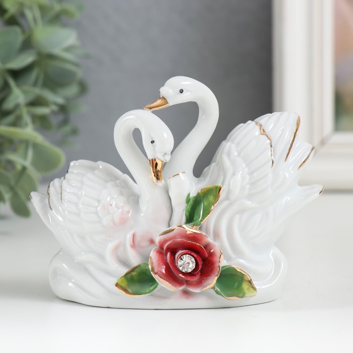 Элегантность и символизм воплотились в изящной керамической фигурке, изображающей двух лебедей с розой. Этот утончённый объект декора станет не только украшением интерьера, но и выразит тонкие чувства, связанные с гармонией, любовью и преданностью. Идеальные пропорции (8×10.5×4 см) делают фигурку универсальной для размещения на полке, столе или в витрине.