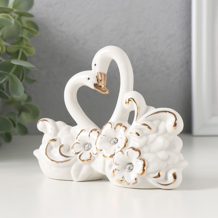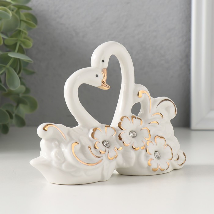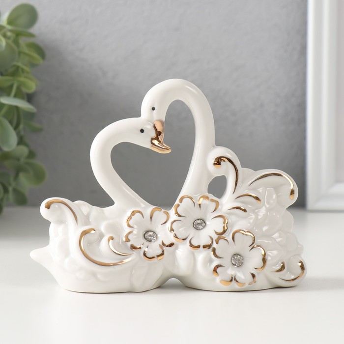 Эта изящная керамическая композиция с лебедями привнесёт в интерьер ноту нежности и гармонии. Белоснежные птицы, окружённые цветочными мотивами и украшенные мерцающими стразами, создают ощущение лёгкости и изысканности.