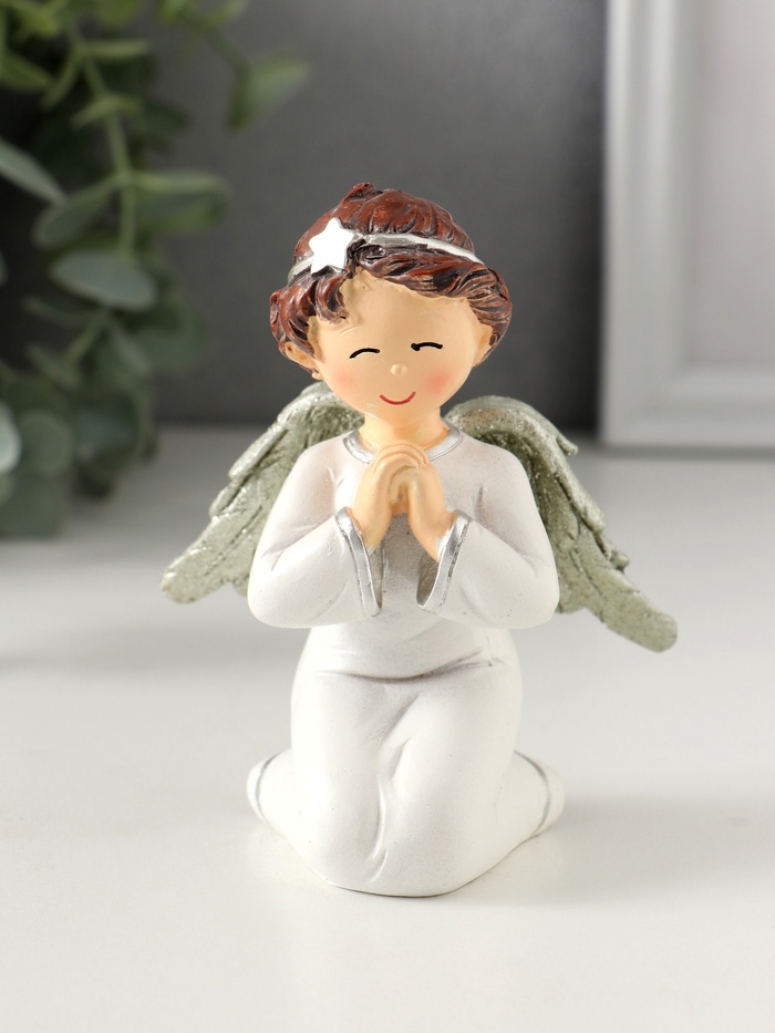 Позвольте себе окунуться в атмосферу тепла и света с изящной фигуркой ангелочка, которая станет настоящим символом добра и гармонии в вашем доме. Эта миниатюрная статуэтка, выполненная из полистоуна, привлекает внимание своей нежной бежевой отделкой и детализированным дизайном, завершенным ободком со звездой в волосах.