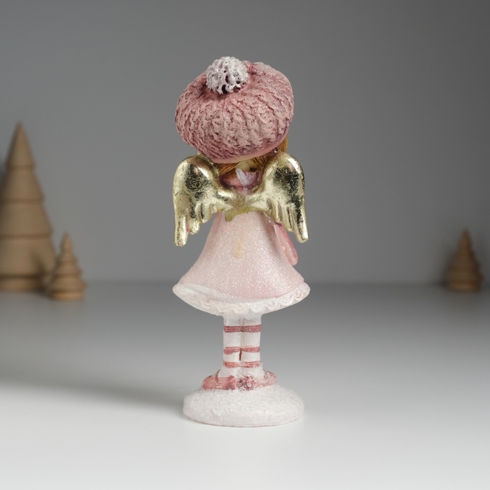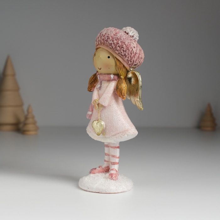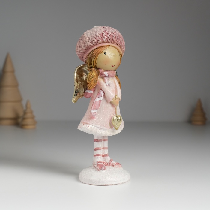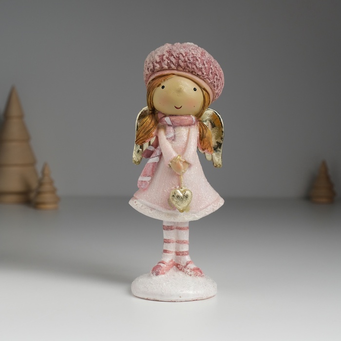 Фигурка полистоун «Ангелочек в розовом платье в розовом берете, с сердцем», 6×5×15.5 см