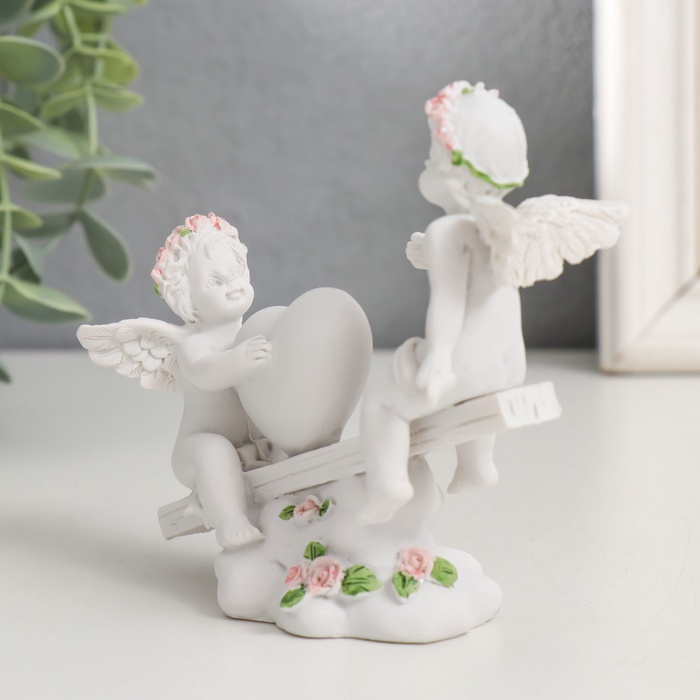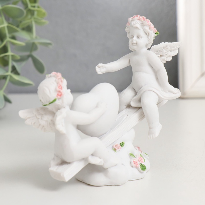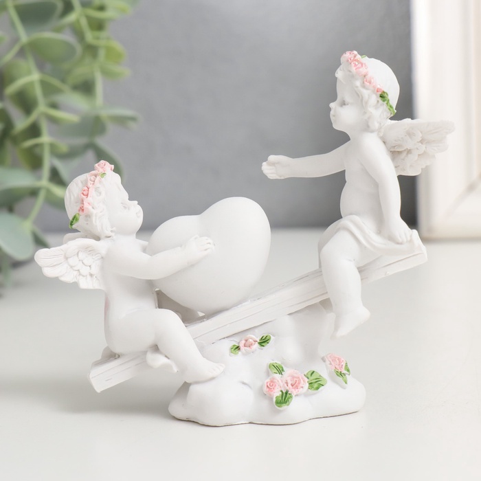 Эта фигурка ангелов на качелях станет нежным акцентом в интерьере или трогательным подарком к особому дню. Композиция передаёт ощущение беззаботного детства и светлой радости.
