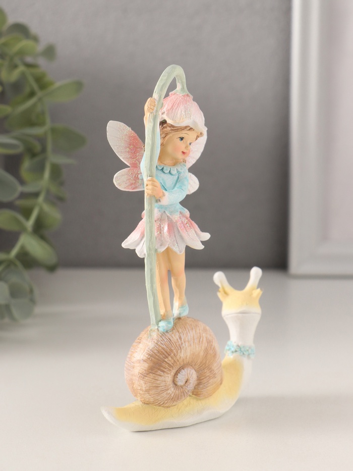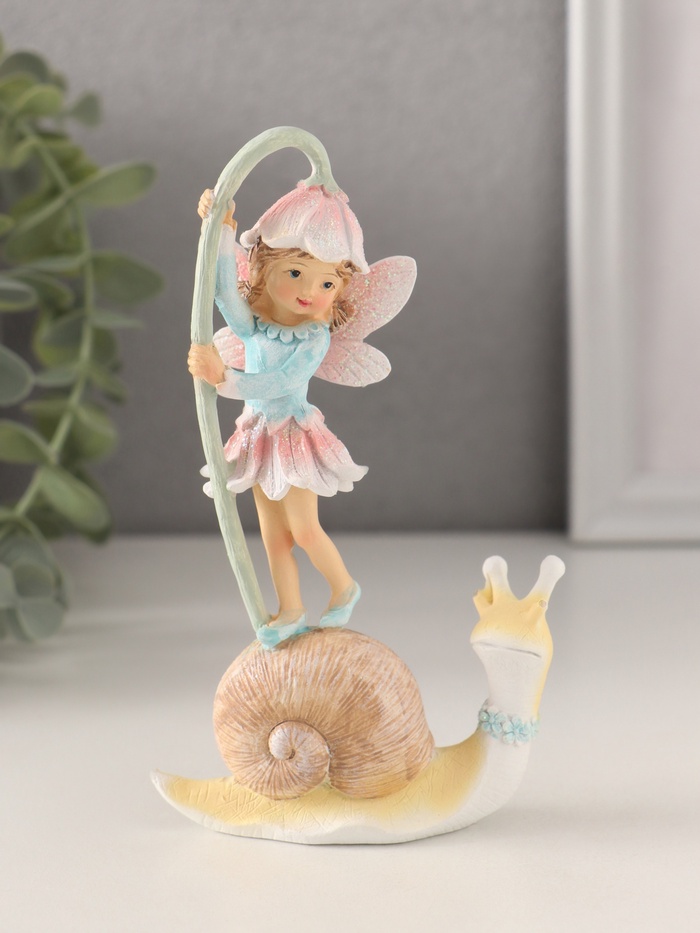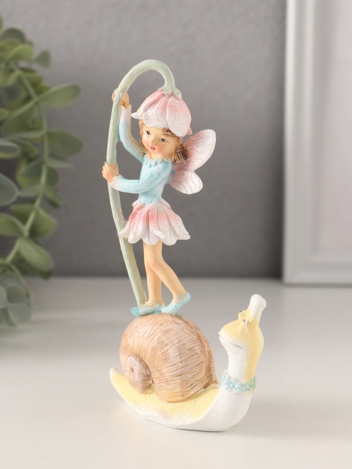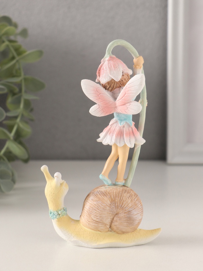 Изделие выполнено из полистоуна — материала, известного своей прочностью и долговечностью. Благодаря тщательно нанесённому многослойному покрытию красками, каждый оттенок выглядит ярко и насыщенно, создавая гармонию разноцветных деталей. Улитка с причудливо изогнутой раковиной и воздушное платьице феи словно оживают благодаря мастерской проработке каждой линии.