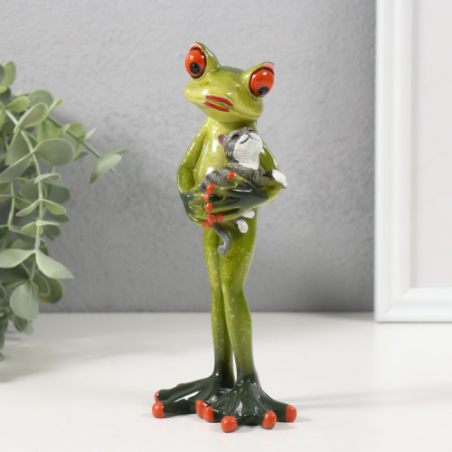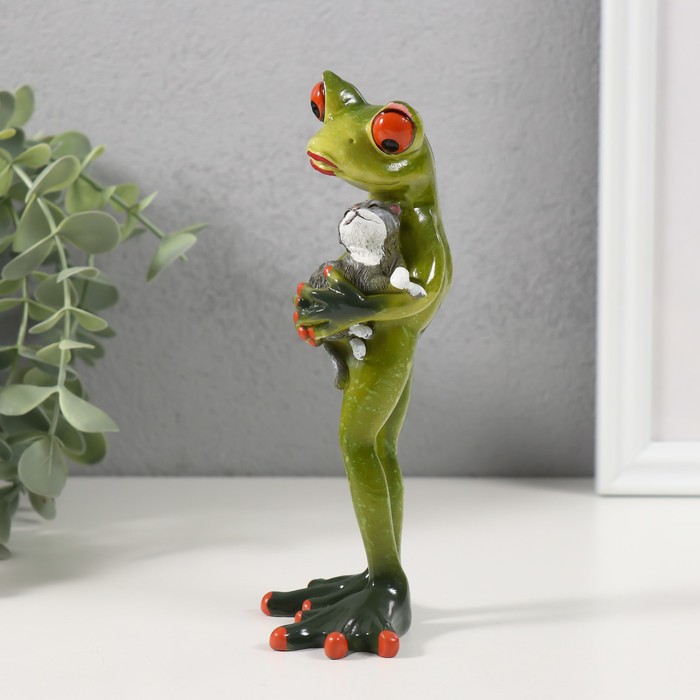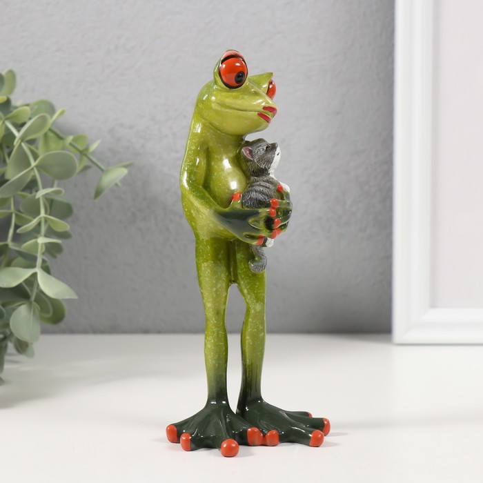 Фигурка полистоун лак «Лягуха с кошечкой», 7.5×6.2×17 см