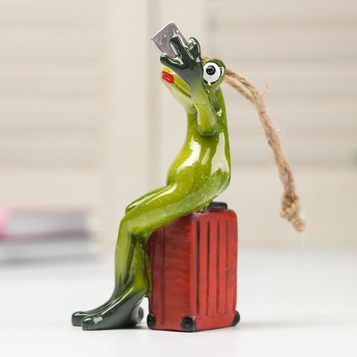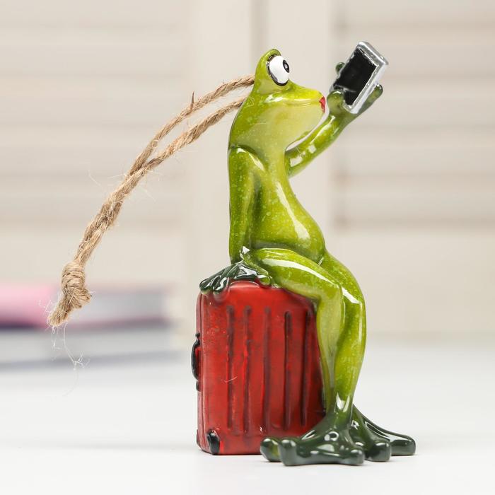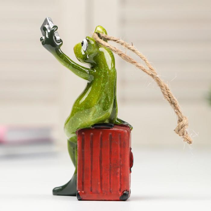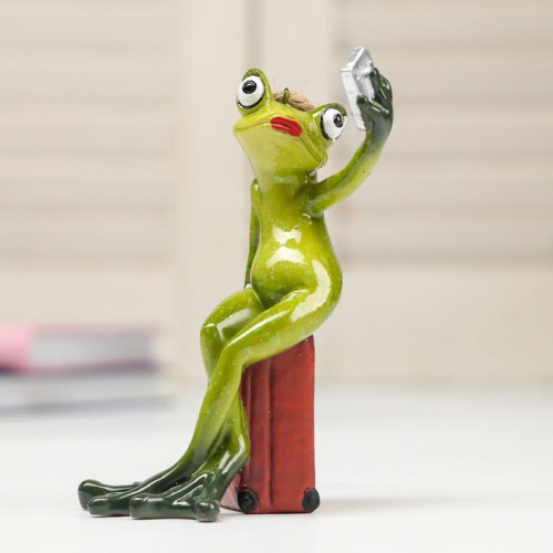 Фигурка полистоун лак «Лягушка-путешественница селфится», 12×6.5×7 см