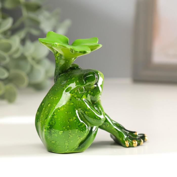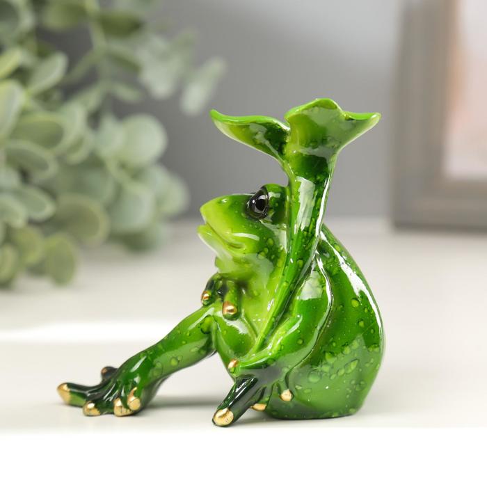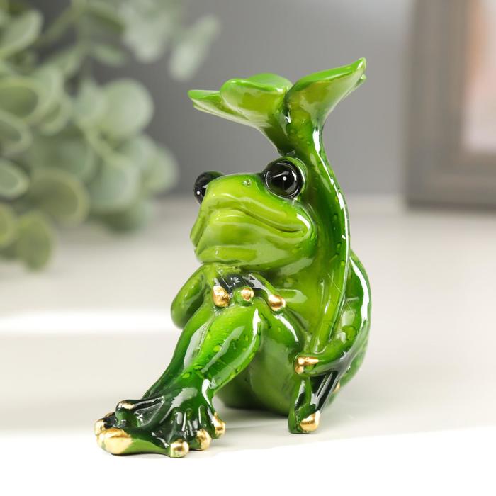 Фигурка полистоун «Лягушка с листочком», 10×6×11 см, МИКС