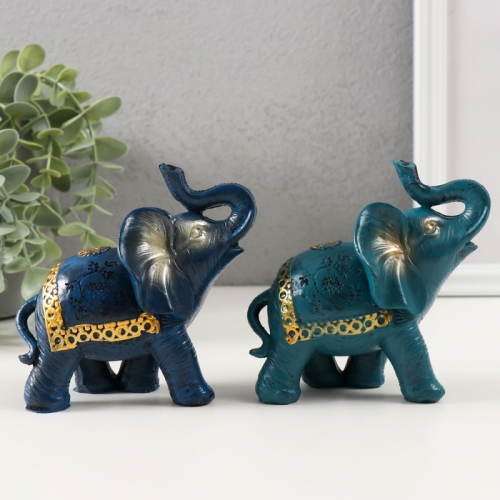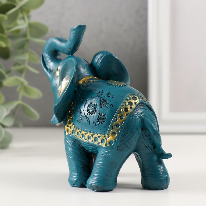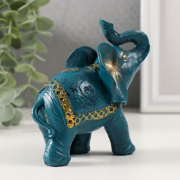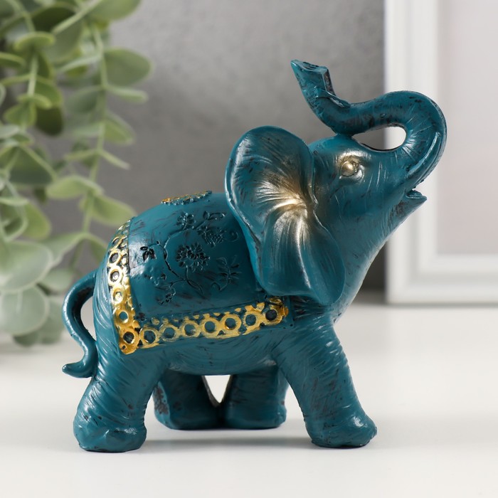 Фигурка полистоун «Синий слон с золотым узором на попоне», 11×11.5×6 см, МИКС