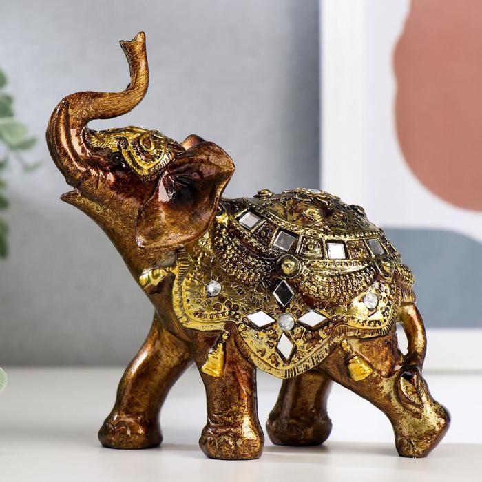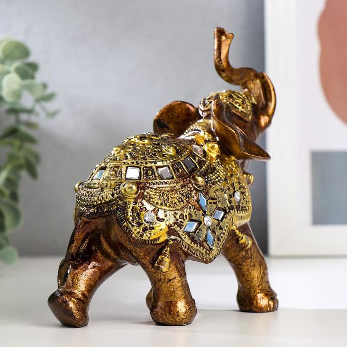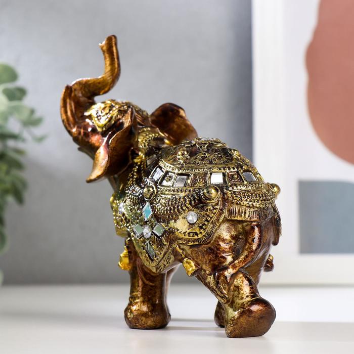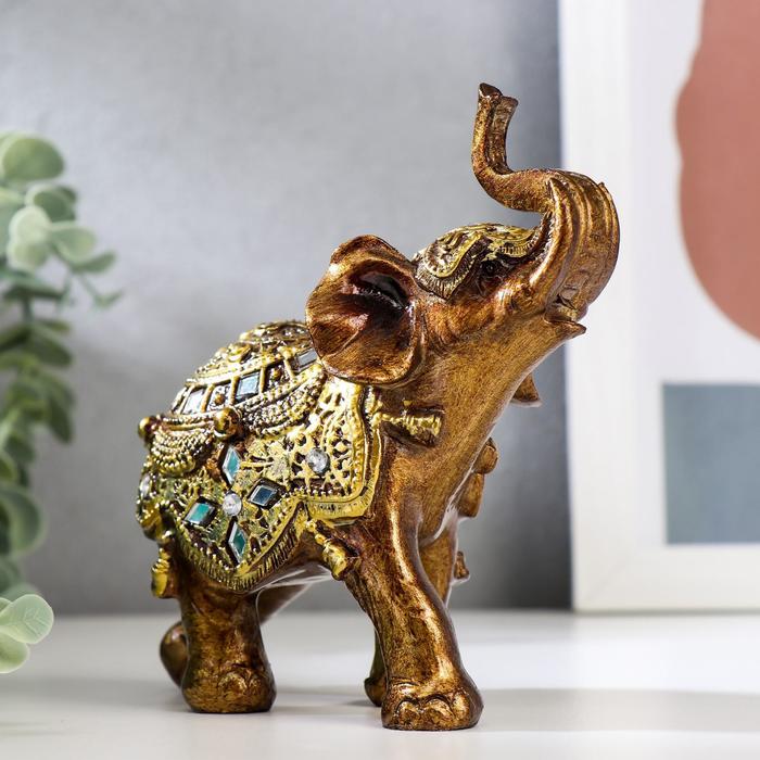 Фигурка полистоун «Слонёнок в золотой попоне с зеркальной мозаикой», 13.5×12×5.7 см