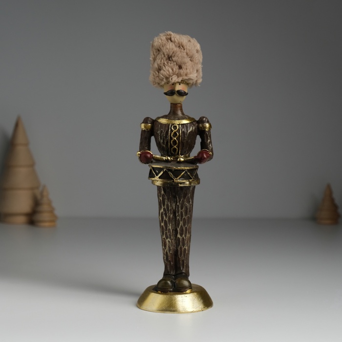 Тщательно проработанные детали костюма и атрибутов создают ощущение подлинности, будто перед вами миниатюрная копия настоящего военного музыканта прошлых веков. Коричневые оттенки придают фигурке особый шарм и универсальность.
