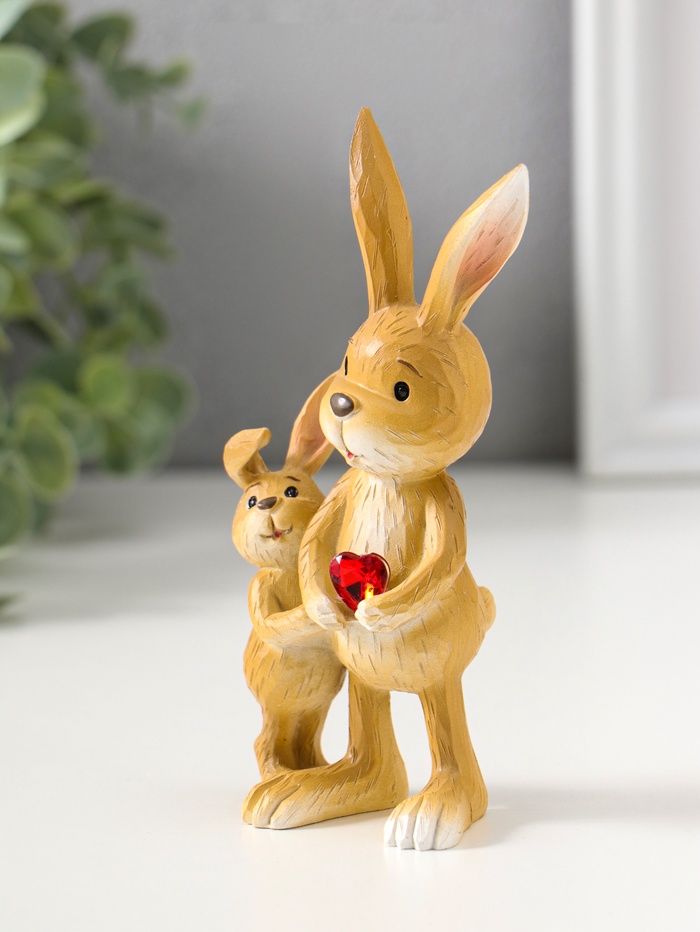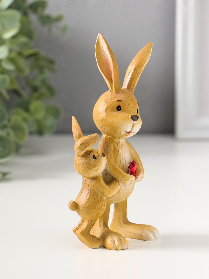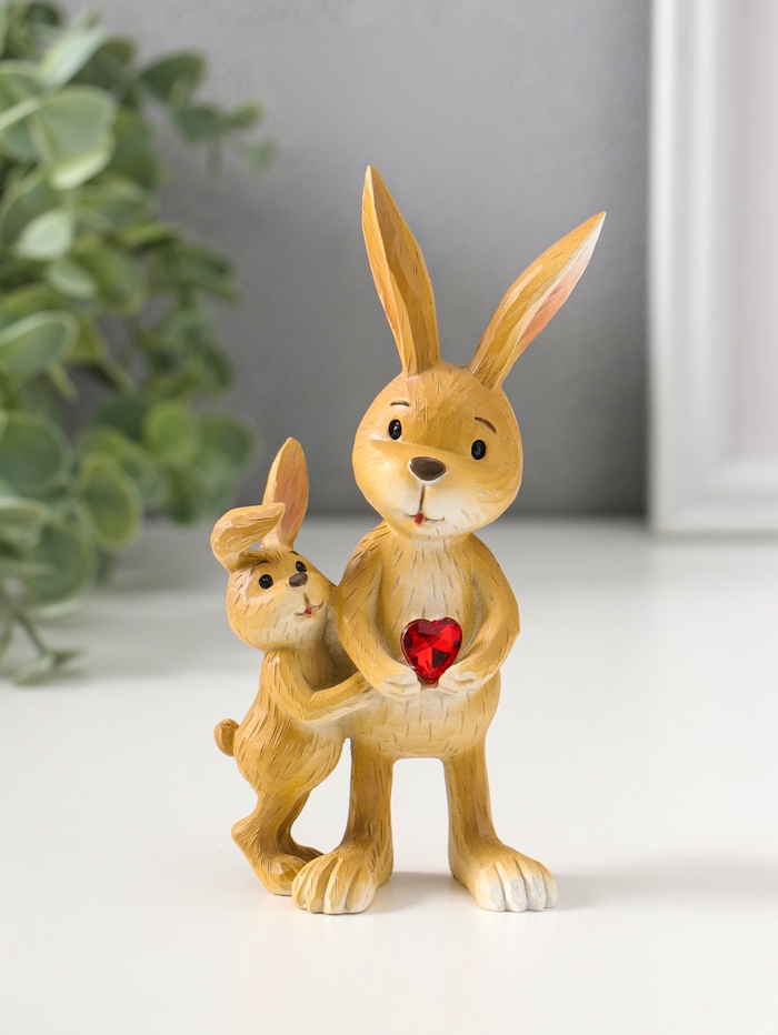 Эта фигурка зайчика с малышом — тёплый символ семьи и заботы, созданный для того, чтобы дарить уют. Нежная композиция из полистоуна передаёт трогательную нежность: взрослый заяц бережно держит сердечко, которое хочет подарить своему малышу. Статуэтка станет душевным подарком на Пасху или День отца, напоминая о самом главном.