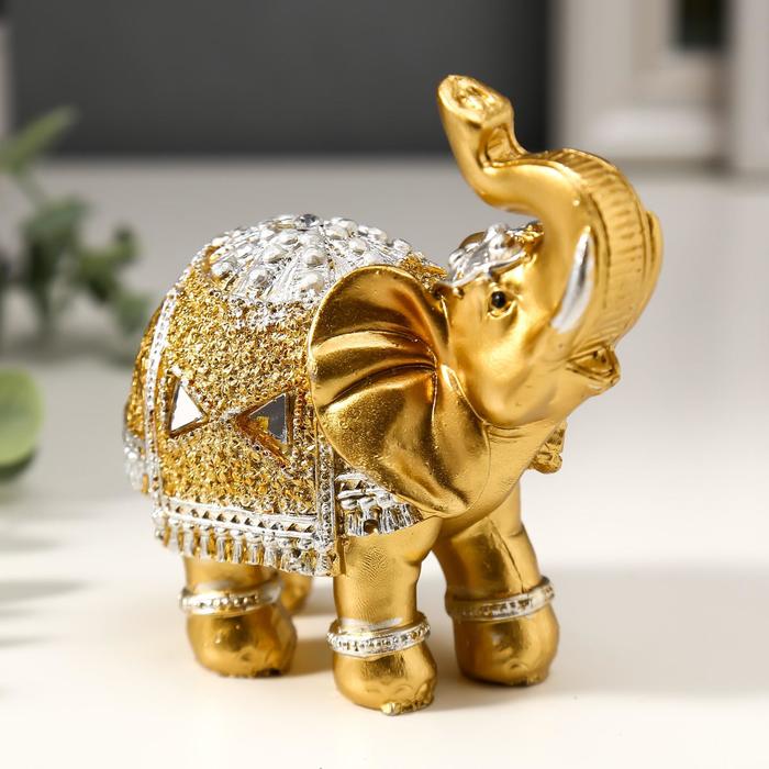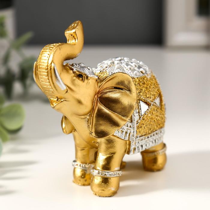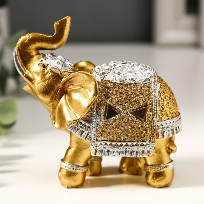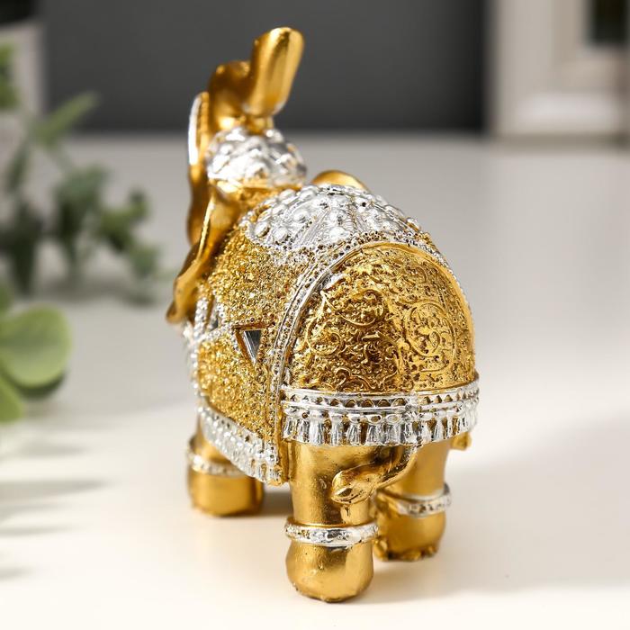 Фигурка полистоун «Золотой слон в зеркальной попоне», 10×11×4.2 см
