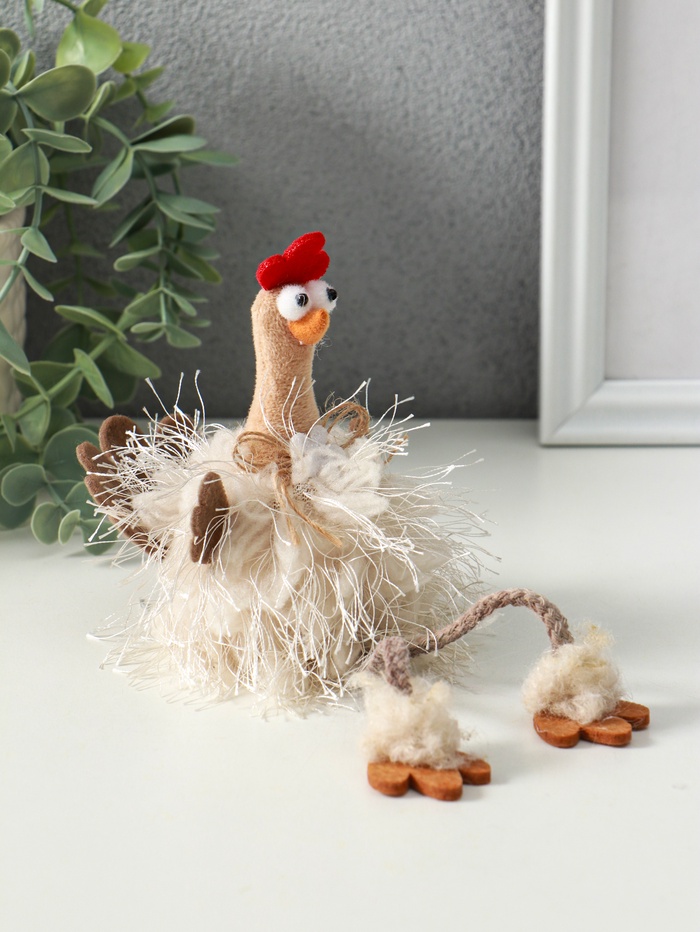 Эта пушистая курочка на длинных ножках станет милым акцентом в интерьере или трогательным пасхальным подарком. Её уютный бежевый образ создаёт атмосферу тепла и домашнего уюта в любое время года.
